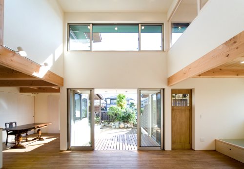 軒は深く、でも家の奥まで陽が差し込むような明るい家をご希望でした 庭を眺める広い浴室などお風呂にもこだわりが・・・ 庭は中庭的な配置にして外の空間も取込んで、普段の生活を楽しんでもらえるよう考えました
