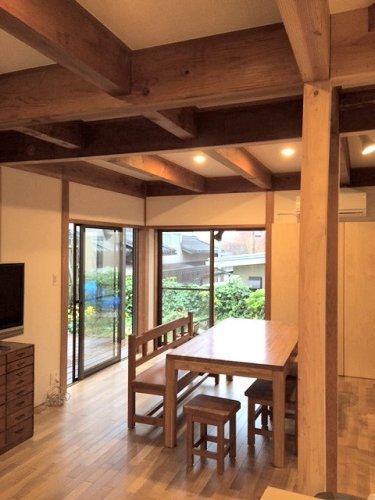 数年前に新築の設計をしたお宅のご両親の家です。 しかももともとの設計は先輩であるコンコード設計の谷山さんです。 もとの雰囲気を壊さないよう気を付けました。 寒さの解消 段差の解消 水回りの新設 収納の確保、という基本はもとより 今以上に快適に開放的に楽しく暮らしていただけるよう半年以上時間をかけてゆっくり進んだり戻ったりしながらプランを固めていきました。 居間の間口を広くすること、北向きのキッチンをリビングに向かって開放すること、庭とリビングのつながりを開放的にすることなどです。 いいリフォームだったと思われることを願っています。