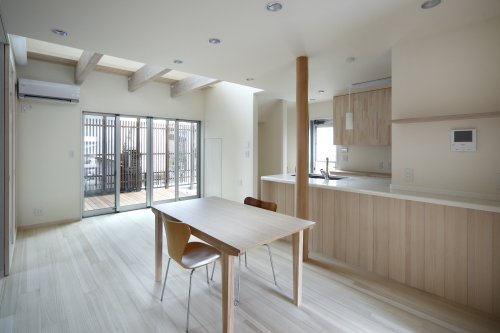 [設計コメント] 築20年の住宅を購入されての全面リフォーム工事です。 計画を始めたころ巷ではトイレの神様という歌がはやっていました。 可愛がってくれたおばあちゃんへの感謝を込めて孫娘である建築主が一所懸命考えられた介護のリフォームです。 基礎と屋根と柱梁だけ残した新築工事と変わらない工事になりました。 間取りは介護室を見守るように、全く既存とは変わっています。 家族の暮らしも快適であるよう2階を減築して吹き抜けを創ったり、外部も生活に取り込めるようデッキテラスを新設しました。 24時間対応の床暖房や柔らかい桐のフローリングなど設備や材料に配慮されています。