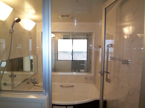 暗かったバスルームにマジックミラーの窓をつけ夜景を楽しむ | ||