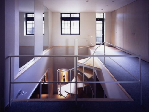 | [設計コメント] 寺ビルの半地下に住むためのリフォーム 採光と通風を確保するため既存スラブを抜き光と風の空間を作りました |